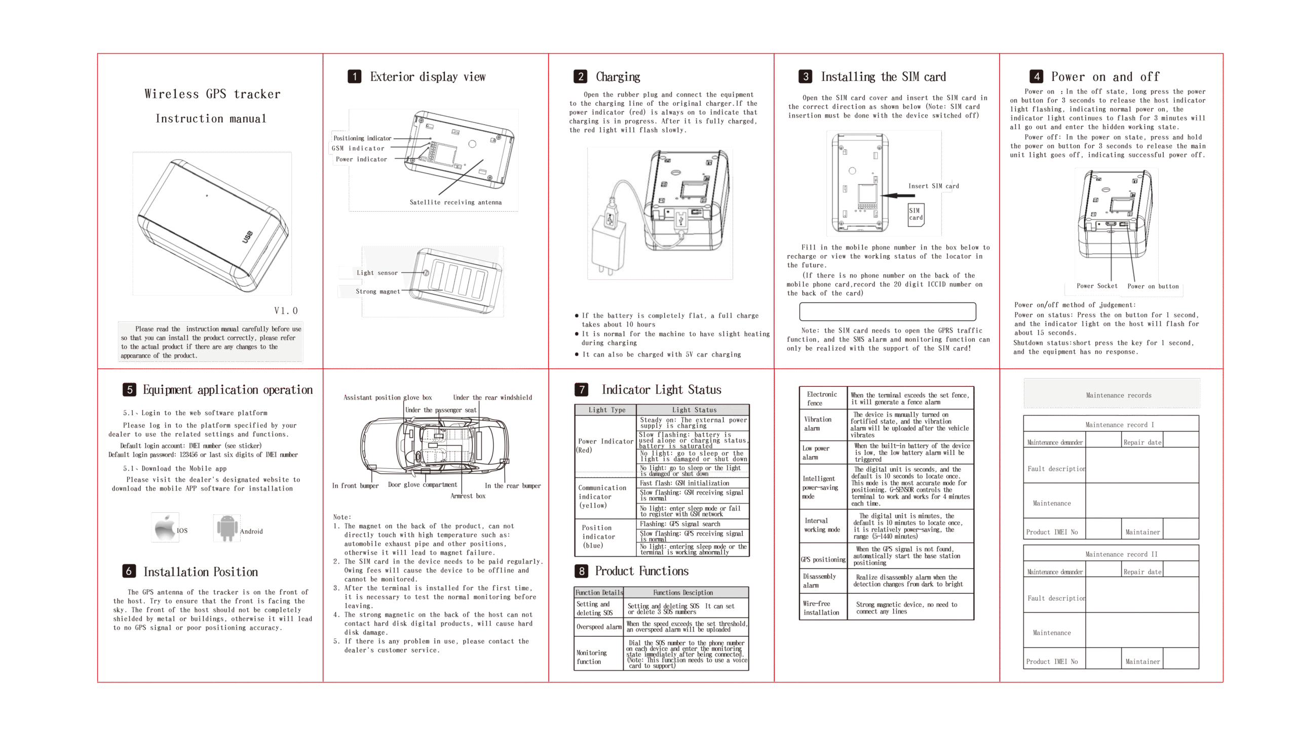 LED Indication: GSM (yellow) ,GPS(blue) ,POWER(red)